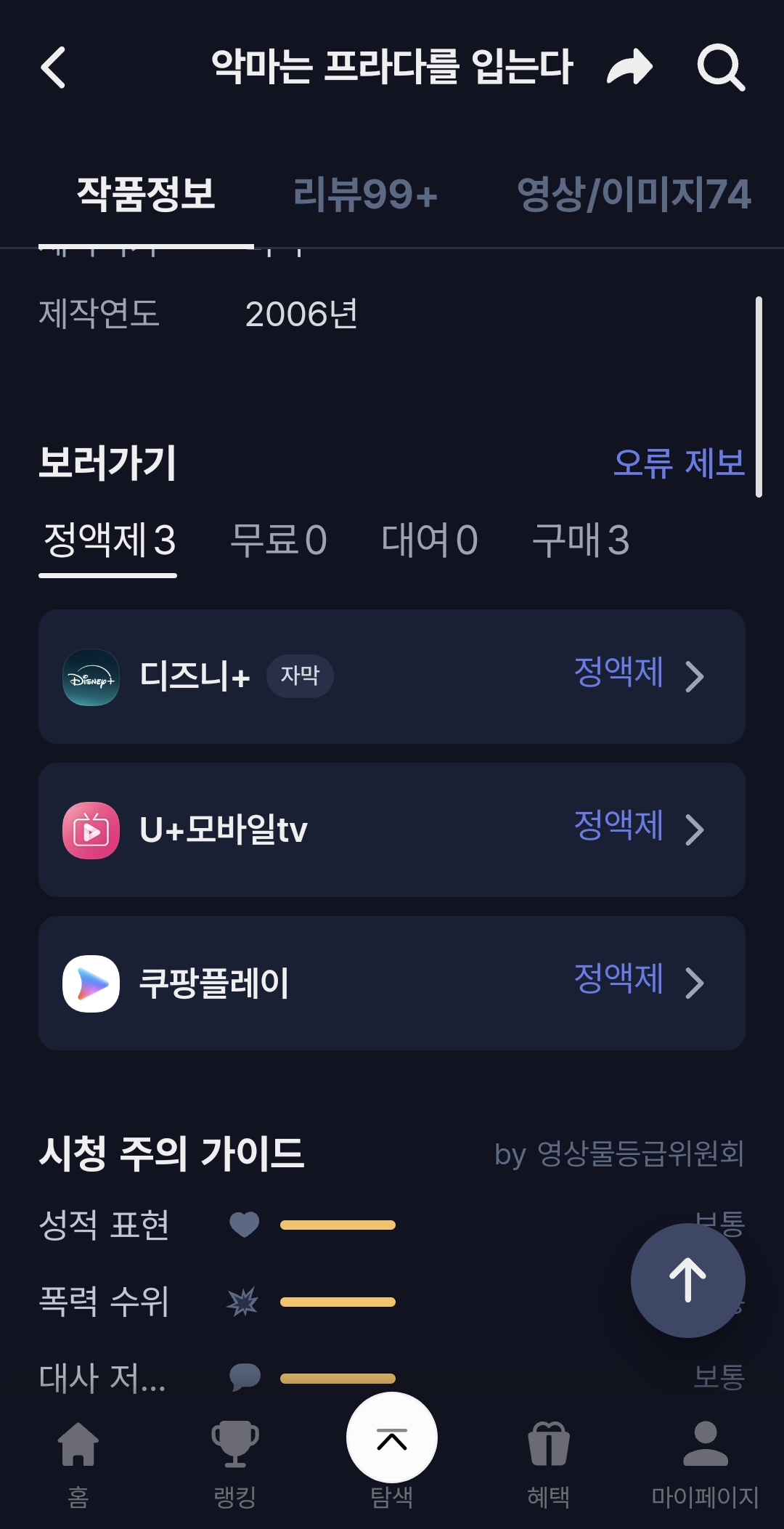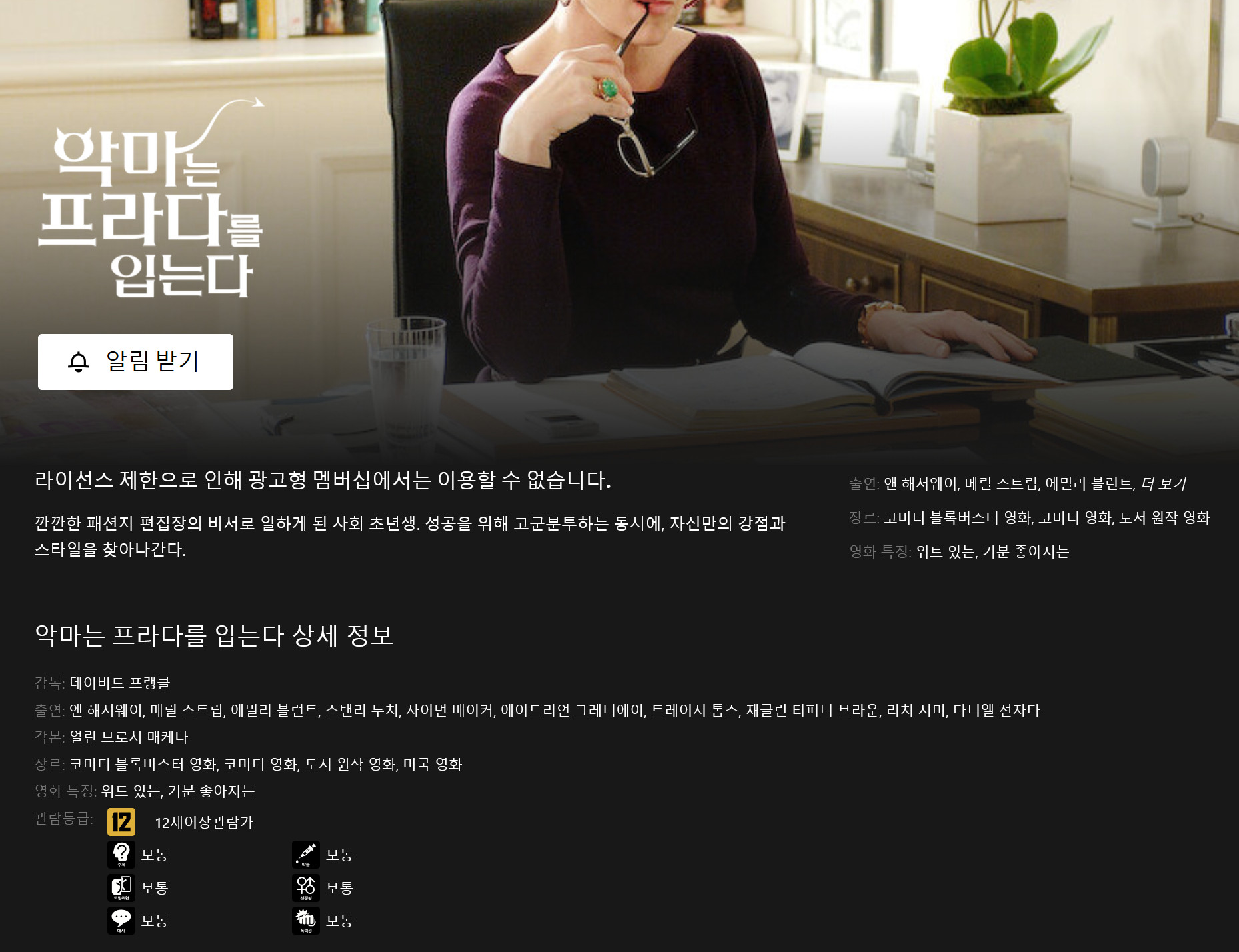 악마는 프라다를 입는다2가 내년 개봉이라 1편 다시 볼려고 찾아보니 광고형은 볼수가 없어요