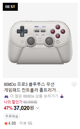 이쁘고 싸고, 성능 좋고 다 좋은데... 확실히 엑박패드나 프로콘등에 비해 피로도가 높네요. 그립이 썩 좋은편은 아닙니다.