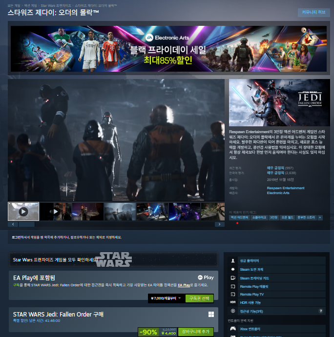 이 명작이 5천원도 안하다니... 이만한 액션 어드벤쳐 게임 찾기가 쉽지 않죠. 일년에 한두개 볼까말까
