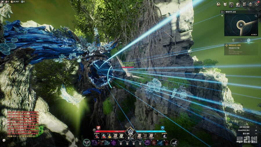 우선 전투 측면에서는 확실한 개선을 이뤄냈다. 엔씨소프트가 서비스 했던 타이틀을 예로 들어서 설명하자면, 블레이드 앤 소울과 전작 아이온의 중간 즈음에 있는 형태다. 전작 아이온이 연속기라는 개념을 사용했었던 바 있는데, 이를 액션적인 조작이 강화된 형태로 재정립한 것에 가깝다. 기본적으로는 타게팅을 바탕으로 적중이 이루어지지만 일부 스킬은 논타겟 형태로 설계되어 있는 것을 볼 수 있다.