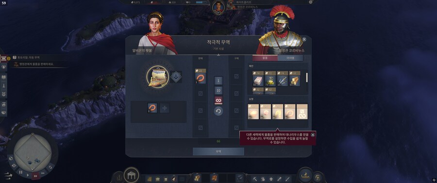 물론 전체적인 그림은 정말 아름다운 편이다. 각각의 속주를 관리하고 거기서 나오는 산출 자원을 가지고 한데 모아 무역하고 전체적인 상승을 이루어 낸다. 분명 이 두 속주 플레이만으로 만들어낼 수 있는 그림이 있는 만큼 장단점이 공존하는 느낌이다.