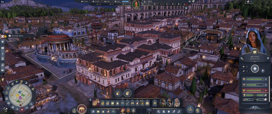 이렇기 때문에 도시 건설 요소는 어느정도 시간이 지나면 지형과 섬 상황에 맞춰 정형화되고 섬이 발전하는 단계에 따라 무엇을 해야할지도 플레이어 내재적으로 패턴화된다. 즉 도시 건설을 할 때 성능적인 부분을 아예 고려하지 않으면 안되지만 그 상한선이 비교적 널널하여 어느정도 성능 안배를 하고나면 이제 자유롭게 이쁘게 꾸미는 시간이며, 로마라는 고대 건축의 정점에 이른 문명을 다루다보니 더더욱 이에 쉽게 빠져드는 면이 있다. 콜로세움을 짓고 문화지구를 짓는다니, 당장 어떻게 해야할지 행복한 상상을 그리지 않는가?