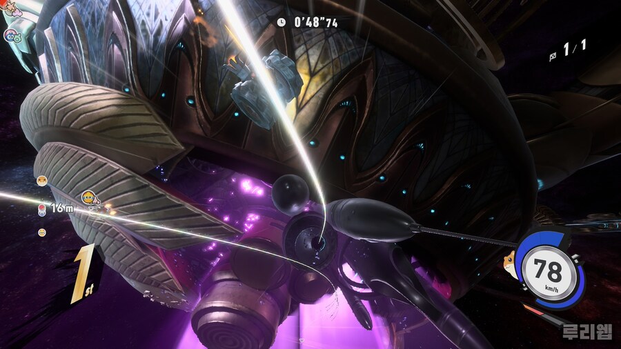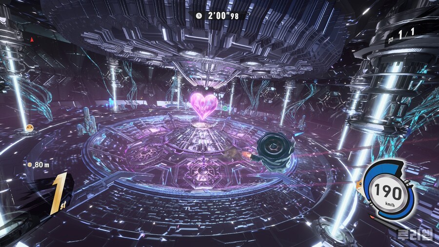 하지만 ‘그냥’으로 끝나지 않고 내부적인 디자인을 살펴봤을 때에는 단순하게 끝날 것들이 아니다. 레이싱 형태로 액션을 구현하고 / 액션을 바탕으로 레이싱을 했을 때 주고받는 공방과 역전의 흐름이 섬세하게 조율되어 있는 상태다. 상대를 손쉽게 따라가면서 순위가 왔다갔다 하게 되며, 이 과정에서 플레이어들이 긴장감을 느낄 수 있는 일련의 밸런스가 잘 조정되어 있는 모습이다.