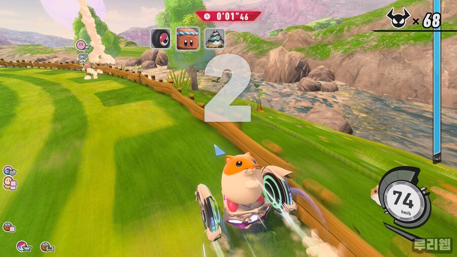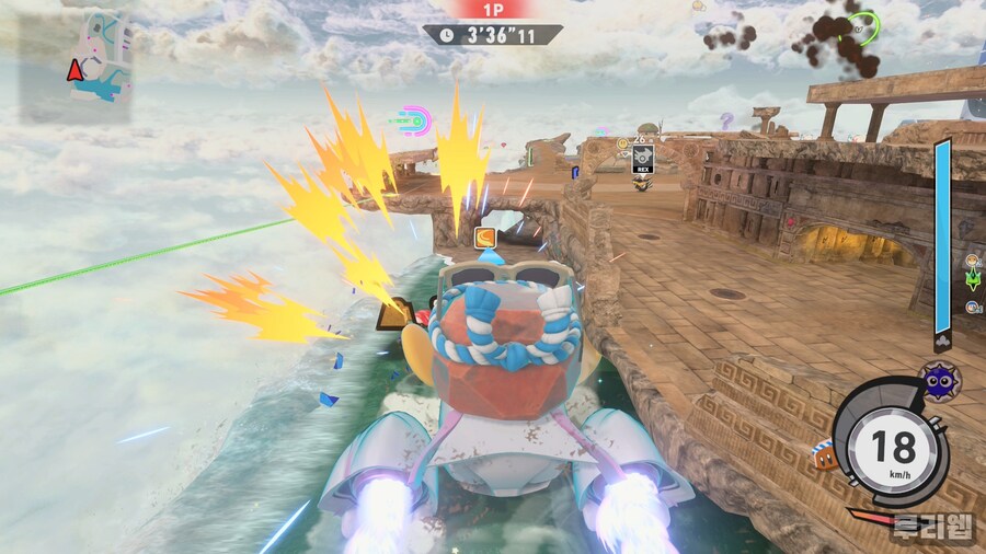 마리오 카트가 고카트로 레이싱을 하는 것이었다면, 커비의 에어 라이더는 ‘범퍼카로 레이싱을 하는 것’에 더 가깝다. 심지어 ‘초고속’이다. 전작을 포함한 에어 라이더 시리즈를 관통하는 이 키워드는 에어 라이더가 가지고 있는 플레이 양상을 한 마디로 요약할 수 있는 좋은 문장이다.