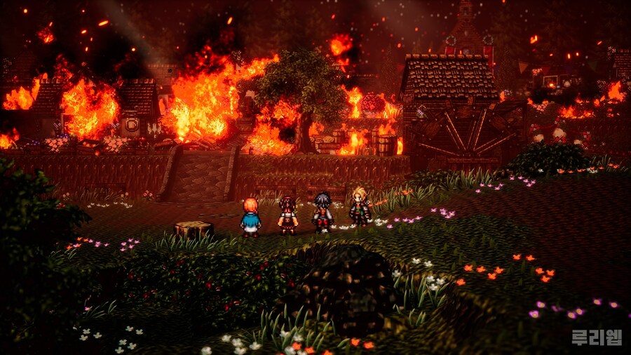 여기서 중요한 위치를 차지하는 것이 옥토패스 0의 새로운 시나리오 ‘성화를 밝히는 자’다. 신규 시나리오는 대륙의 패자에 있던 이름없는 마을을 하나의 이야기 요소로 떼어놓은 것이다. 플레이어가 자신만의 캐릭터를 만들고 / 좋아하는 음식을 정하고 정체성을 부여하도록 한 다음, 자신의 고향인 위시베일이 파괴되는 과정을 경험하도록 했다.