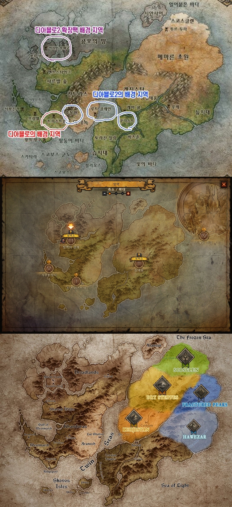 디아2, 디아3, 디아4. 엔딩에서 나이스보트 배타고 가는게 서쪽 대륙으로 건너가는건지, 아님 남쪽 정글쪽으로 가는건지, 더 남쪽 스코보스제도쪽으로 가는건지는 모르겠슴 설마 아리앗 분화구로 가서 세계석있던 방... 거기다 던지겠다!! 그런건가. 반지원정대가 아니라 소울스톤 원정대...