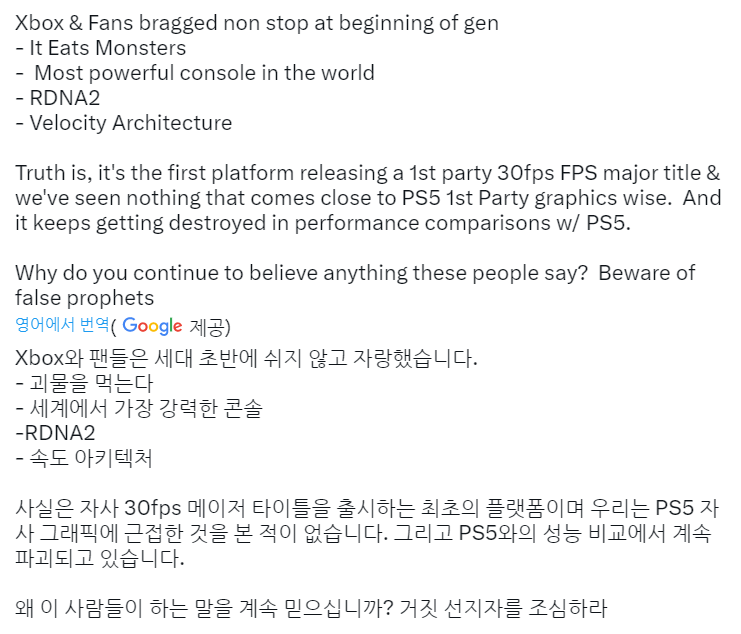 PS5발매때 테라플롭스 직접비교질로 가변스테이션 어쩌구하던거 다 허구란거 드러났으면 학습할법도 한데 아직도 숫자놀음이니...