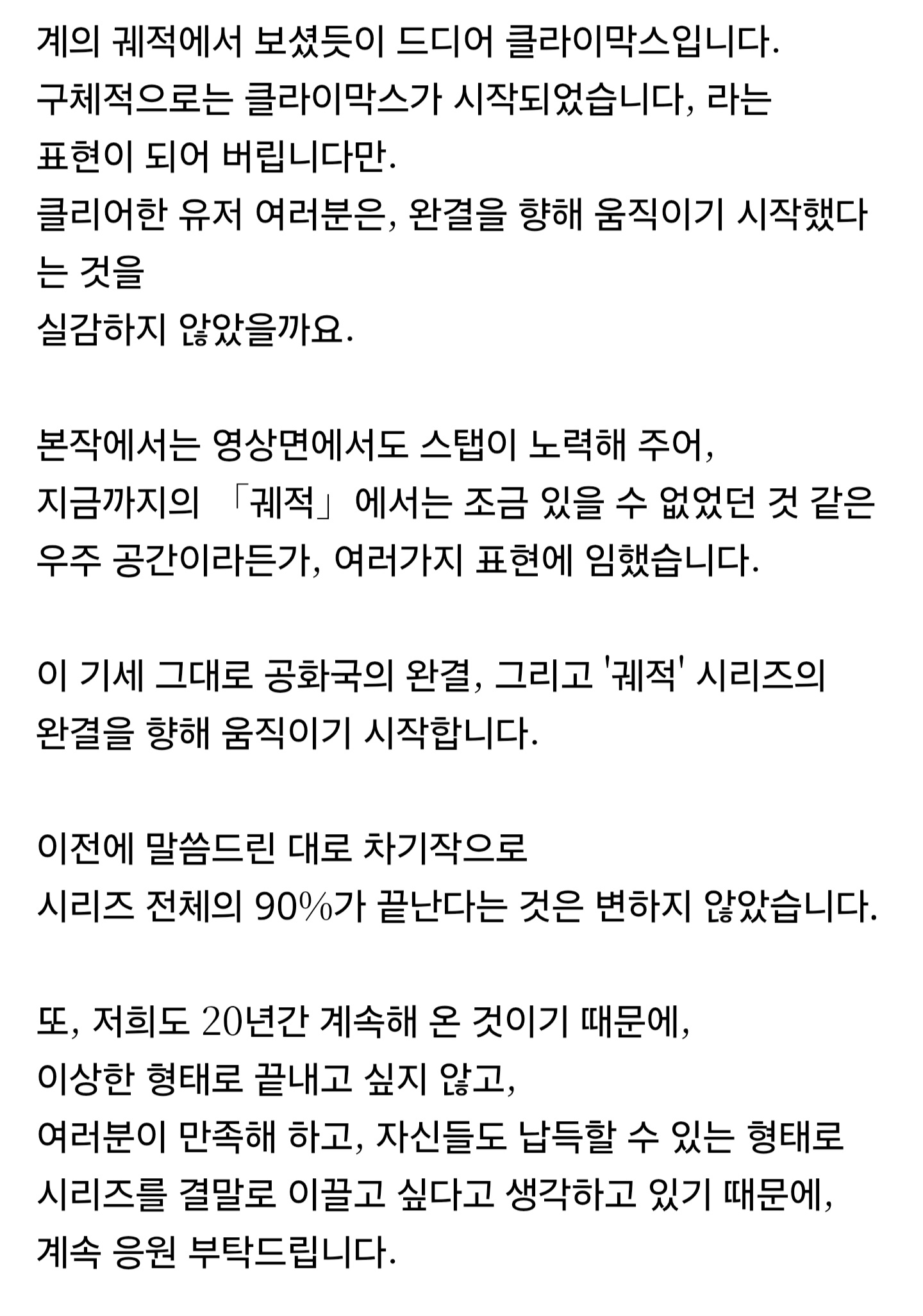 이러나 저러나 궤적 시리즈는 이제 마무리 단계에 들어갔고 궤적 시리즈 이후를 준비해야하긴하죠. 궤적과는 다른 어떤 내용이 나올지 궁금하네요