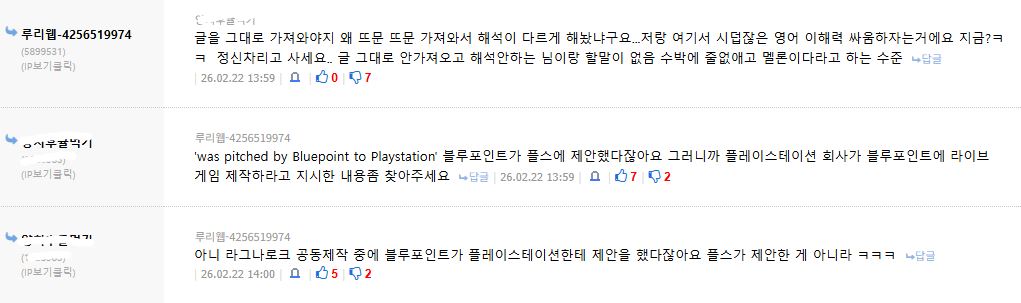 일부러 흐린눈 하지마세요 소니 경영진의 자사 스튜디오 관리 실패를 지적하는 내용이잖음 | 26.02.22 21:05 | | |