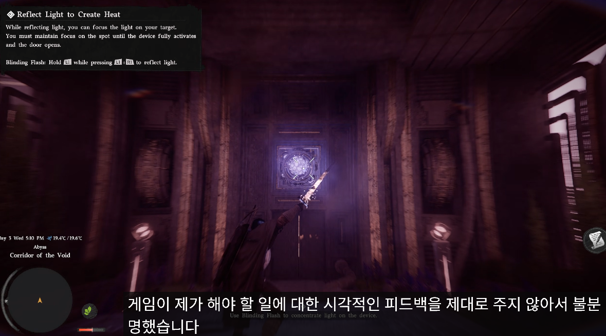 예를 들어 빛을 반사해 문을 여는 퍼즐이 있었는데, 조작 방식이 직관적이지 않았고 퍼즐이 제대로 진행되고 있는지에 대한 명확한 시각적 피드백도 거의 없었다.