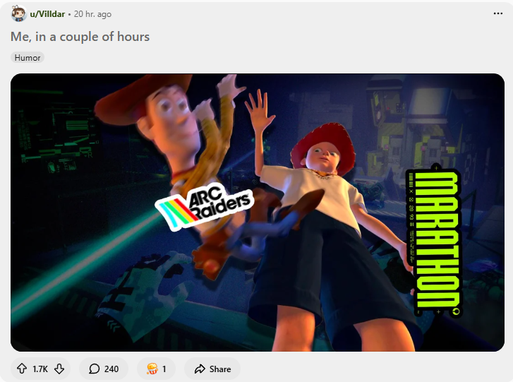 마라톤 유저들 레딧에 모여서 다른 게임 조롱하면서 갓겜이라고 올려쳤는데 결과가 이렇게돼서 어쩌냐..