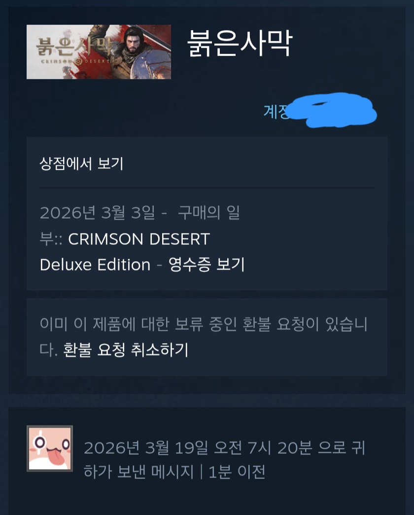 키 구입이라 환불도 못 하는…ㅜ,.ㅜ 콘솔판 DL도 샀는데.. 따흑! | 26.03.19 07:31 | | |