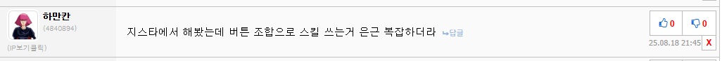 던전앤 파이터 커맨드냐,스트리트 파이터,철권 커맨드 같아. 쓰면 쿨타임 10프로 감소. | 26.03.21 07:22 | | |