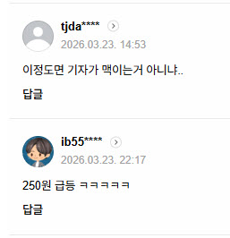 기자가 물렸나보네 ㅋㅋㅋ | 26.03.24 00:31 | | |