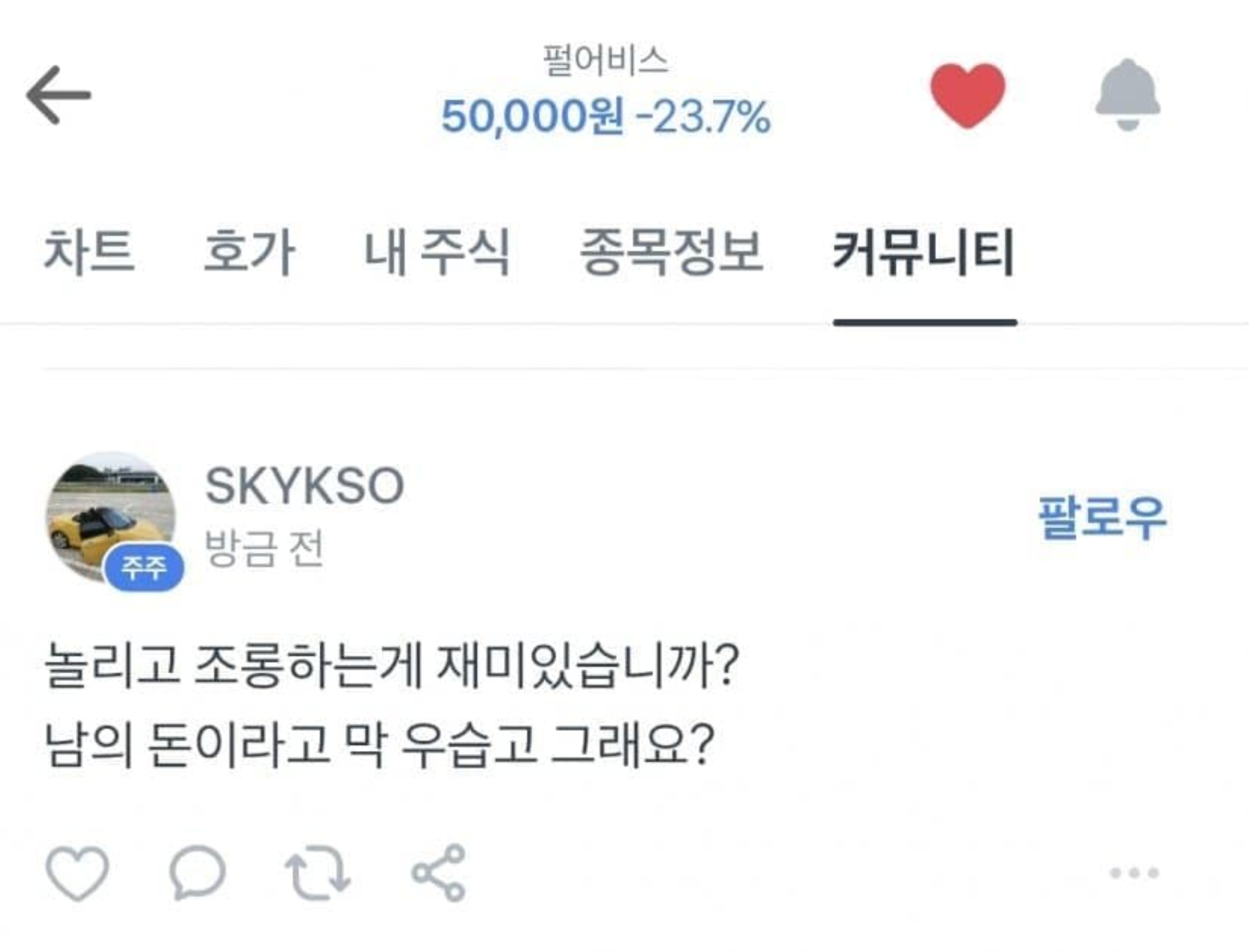 부러워만 하지 마시고 펄어비스 주식 직접 구매해보세요 마침 할인행사도 진행하고 있어요 | 26.03.23 23:34 | | |