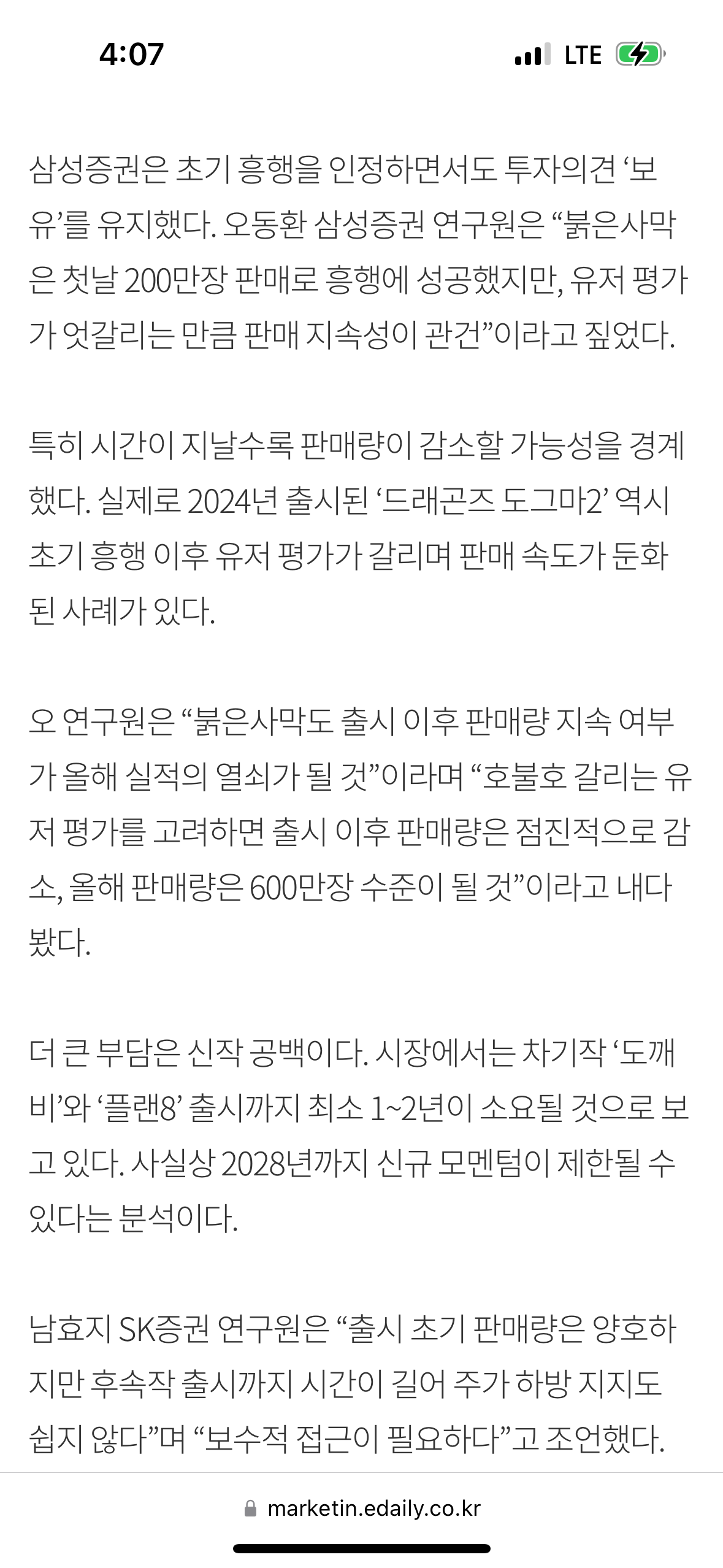 농협 / 삼성 이렇게 연구원들 전문적인 예측만 담겨있지 회사 내부에 기대치 판매량 / 향후 손익 분기점 여기까지 정보는 나도 알수가 없고 검색이 안되네 … 중요한건 판매량은 정확히 보여주는데 패키지 반품 / 고객 악평으로 스팀 환불 이쪽은 공개를 안하고 있음 | 26.03.24 15:32 | | |