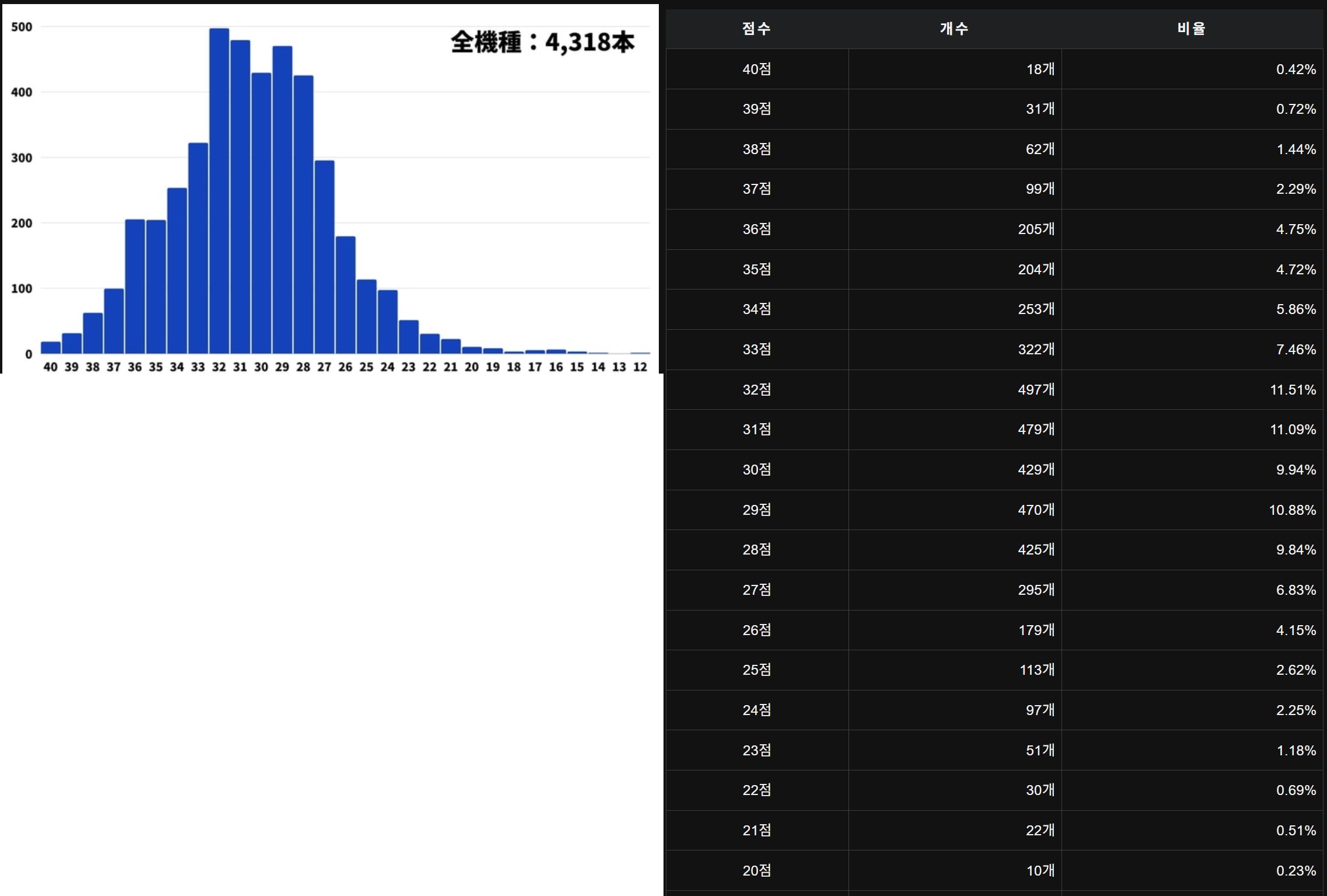 패미통 점수 분포를 분석한 자료를 가져와 봤습니다. 그래프 보시면 아시겠지만 32점~28점대가 거의 중간에 근접 합니다. 그러니깐 20점이 중앙이 아니라는 소리죠. 점수를 너무 후하게 줘서 봤더니 30점대가 기본으로 준다는거죠 30점 이하면 진짜 패미통 점수 치고는 낮은겁니다.