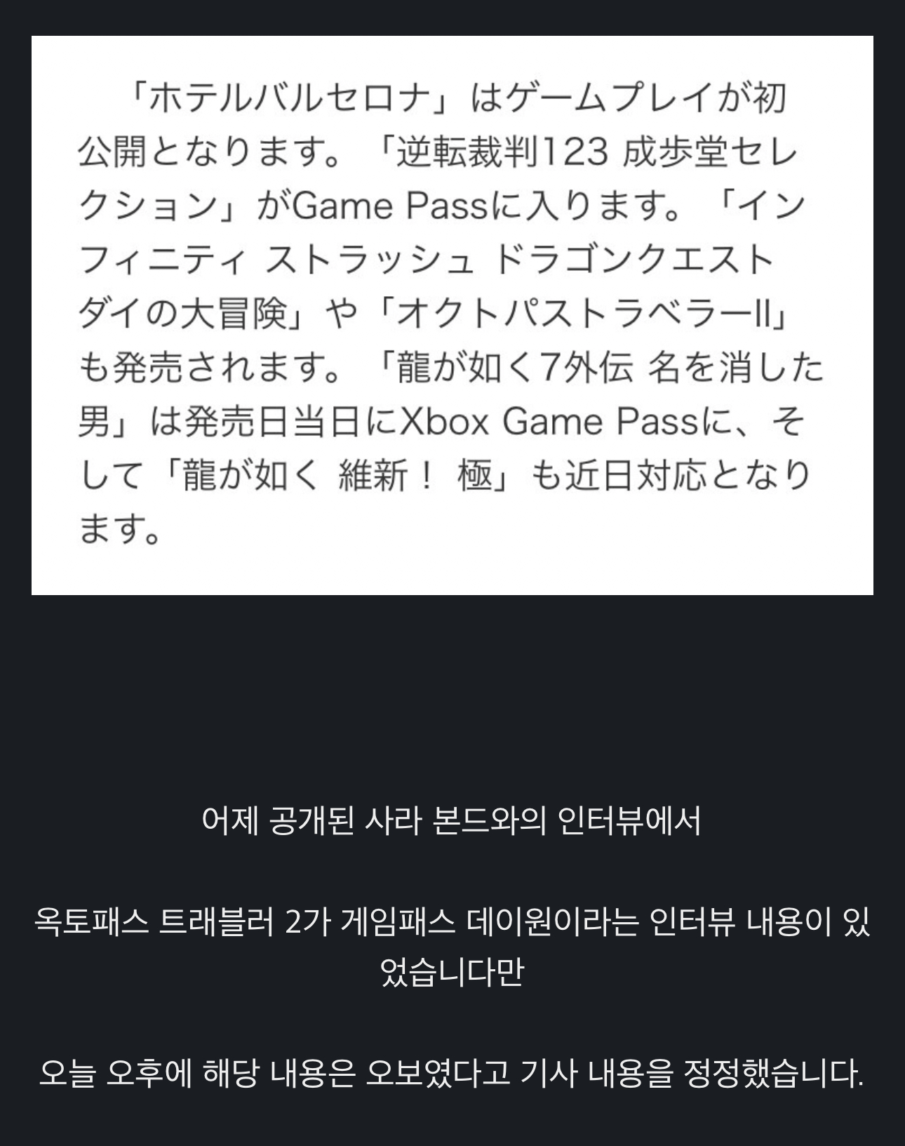 필처럼 믿음이 안가는 허언녀~ 전에 게임패스 옥토패스트레블러2 데이원 오보 기사 나오게 만든 그 허언녀 임~