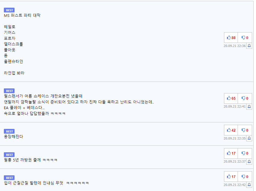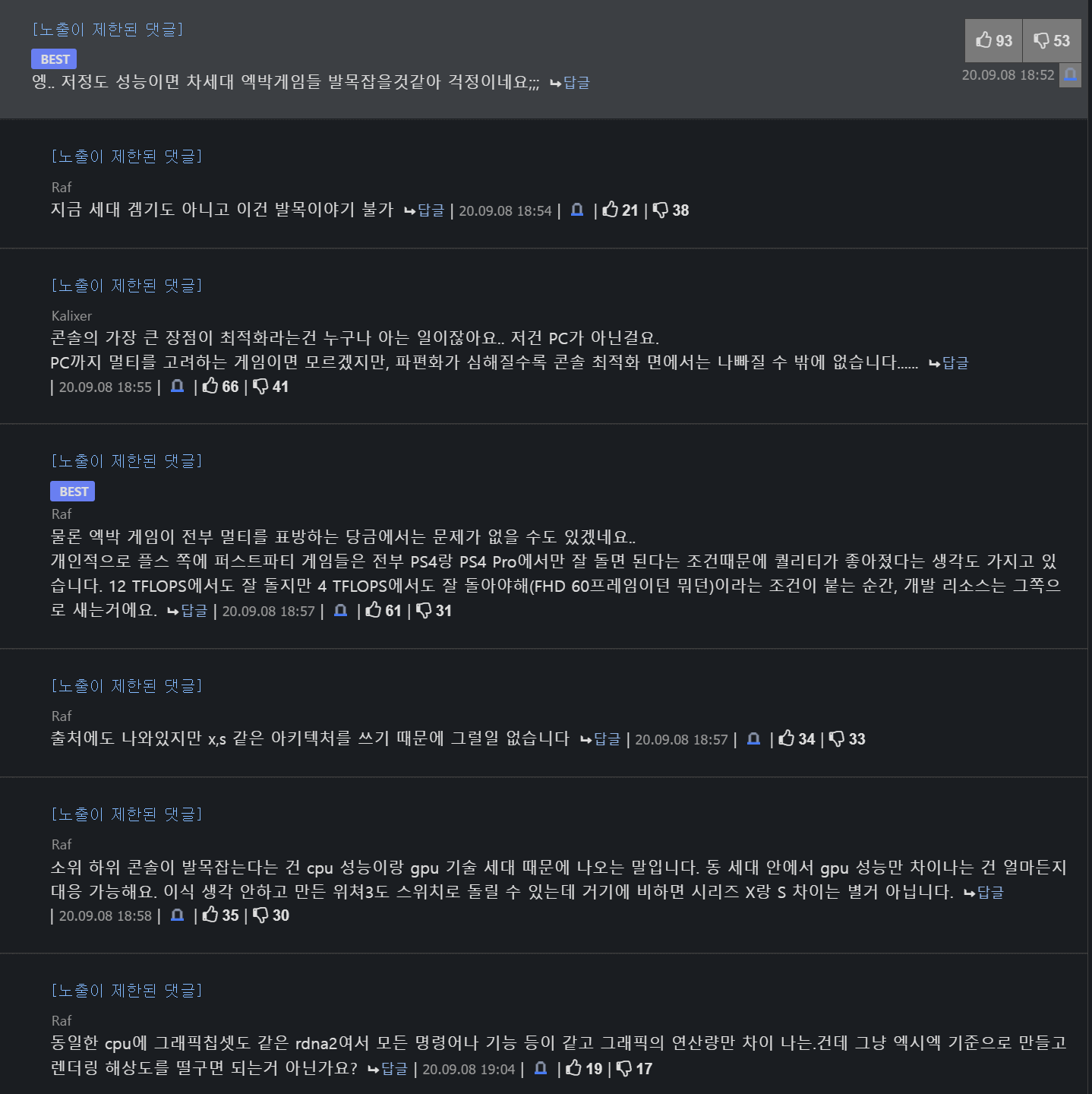 당시에 루리웹에서 엑시엑 사양 공개했는데 그게 잘못 기입되어서 그거 하나 가지고 "플빠웹"이니 뭐니 조리돌림 당함 평소같았으면 그냥 "오타, 잘못된 정보 수정좀" 하고 끝날 일인데 엄청난 질타를 받았었음 하도 욕쳐먹으니 오죽했으면 루리웹에서 저 엑박티셔츠에 따봉까지 했겠음? 근데 또 저거 가지고 비꼬네 뭐네;; ㅉㅉ 최악의 팬덤 ㄷㄷㄷ | 25.10.07 17:41 | | |