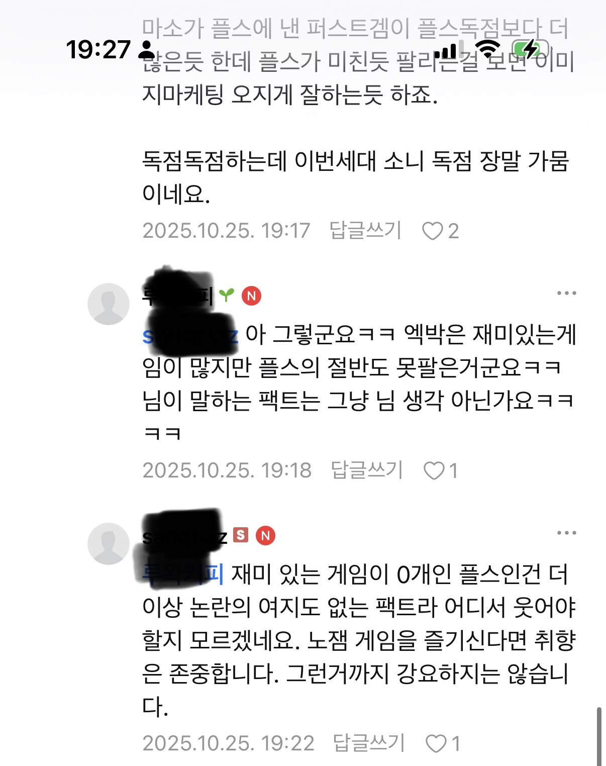 대략 우린 중립이라면서 쓰는 단어가 “플빠들” “엑박분들” | 25.10.27 13:07 | | |