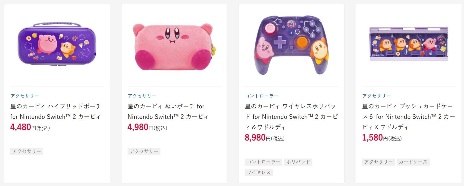 참고로 일본 가격입니다 커비 인형 파우치 - 4980엔 커비 하이브리드 파우치, 퀼팅 파우치, 리버서블 수납가방 - 4480엔 호리패드 TURBO - 8980엔 카드 케이스 - 1580엔
