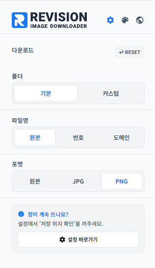- 포맷 자동 변환: 번거로운 WebP, AVIF 등의 최신 포맷을 다운로드 시 고화질 JPG/PNG로 일괄 변환할 수 있습니다.