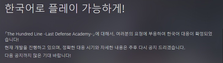 [정보] 헌드레드 라인 -최종방위학원- 스팀판 한국어 추가 공지 [3]