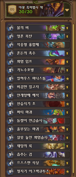 최대한 쓰레기 같은 카드로 덱을 구성해야 합니다. 개인적인 추천 직업은 자해 카드가 많은 흑마법사입니다.