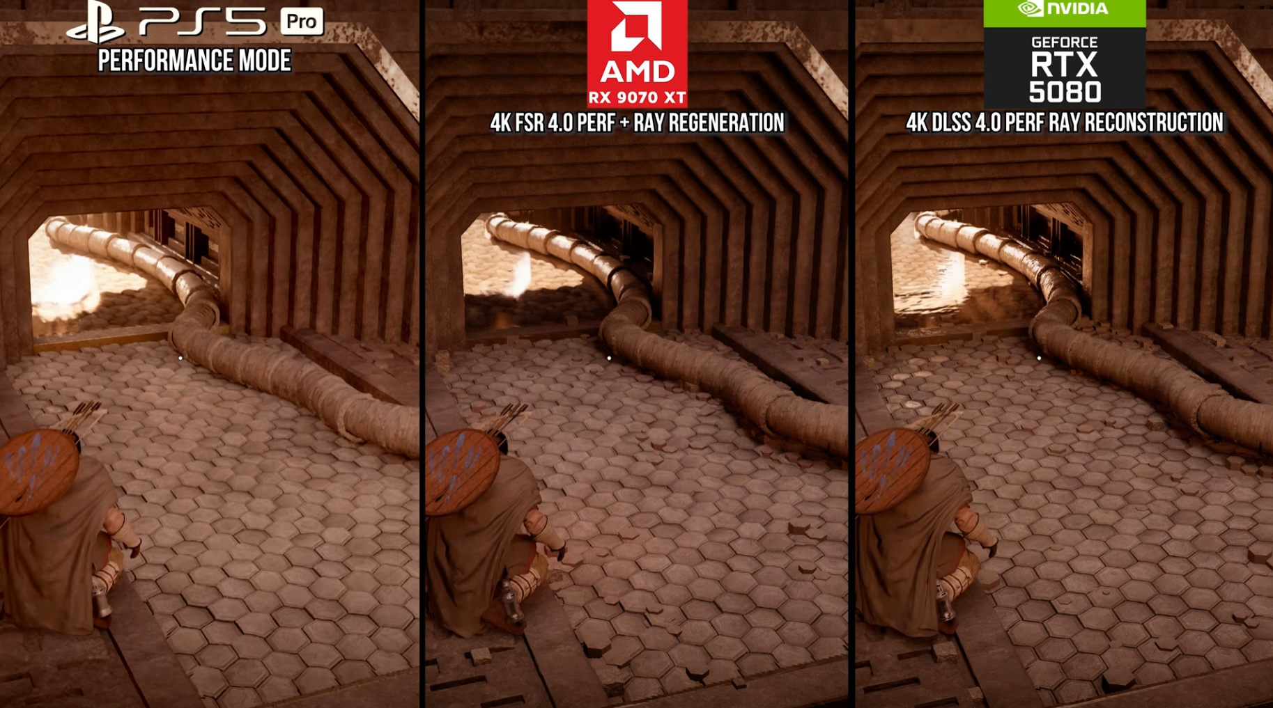 이를 보완하기 위해 PC 버전에서는 **Nvidia의 레이 리컨스트럭션(DLSS)**과 AMD의 레이 리제너레이션(FSR) 기술을 지원하며, 이는 콘솔과는 차원이 다른 조명 품질을 선사합니다. [02:42]