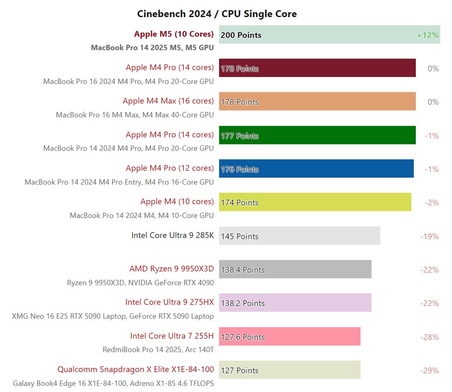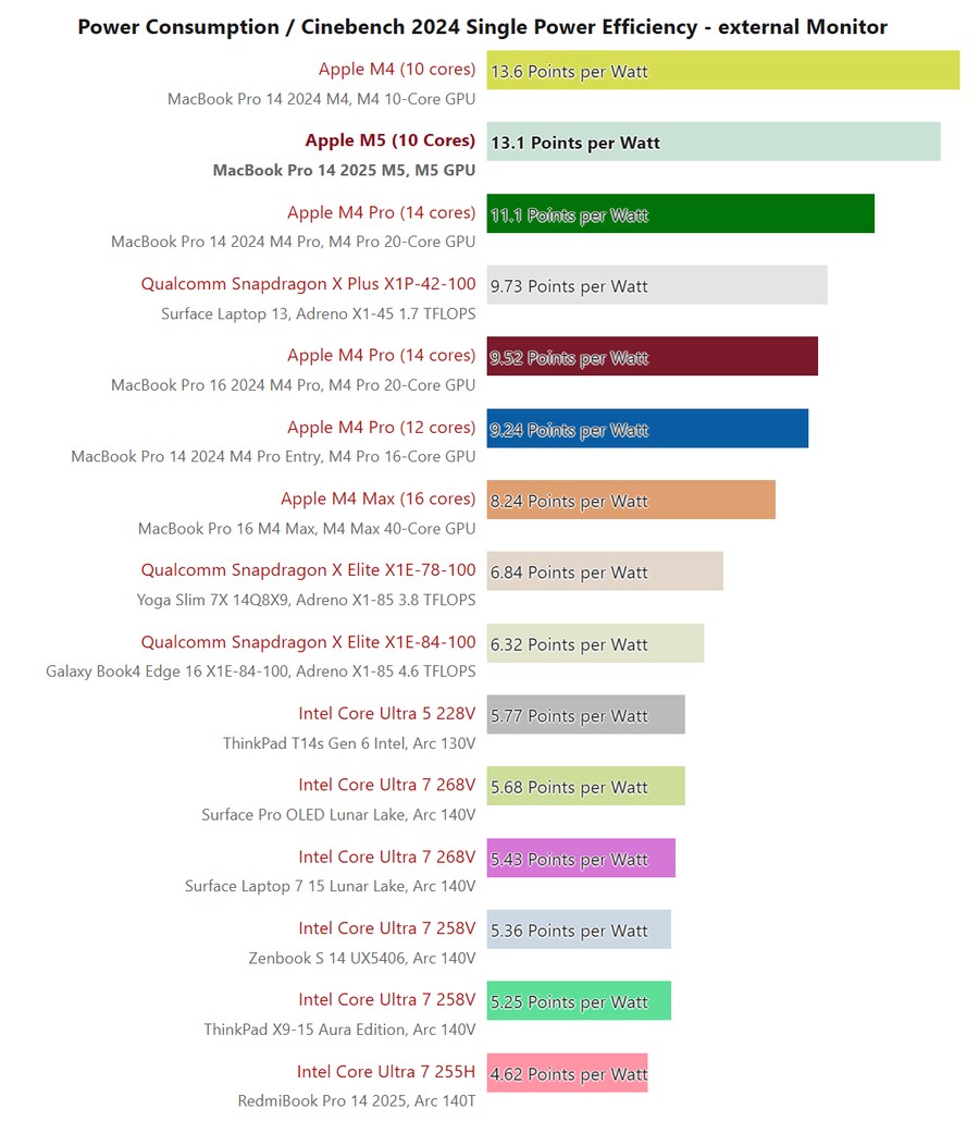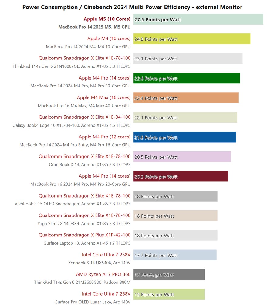 와 싱글이나 멀티나 전력 효율성이 장난아니네요. 저 상태로 나올 M5 Pro/Max가 기대됩니다 ㅋㅋ