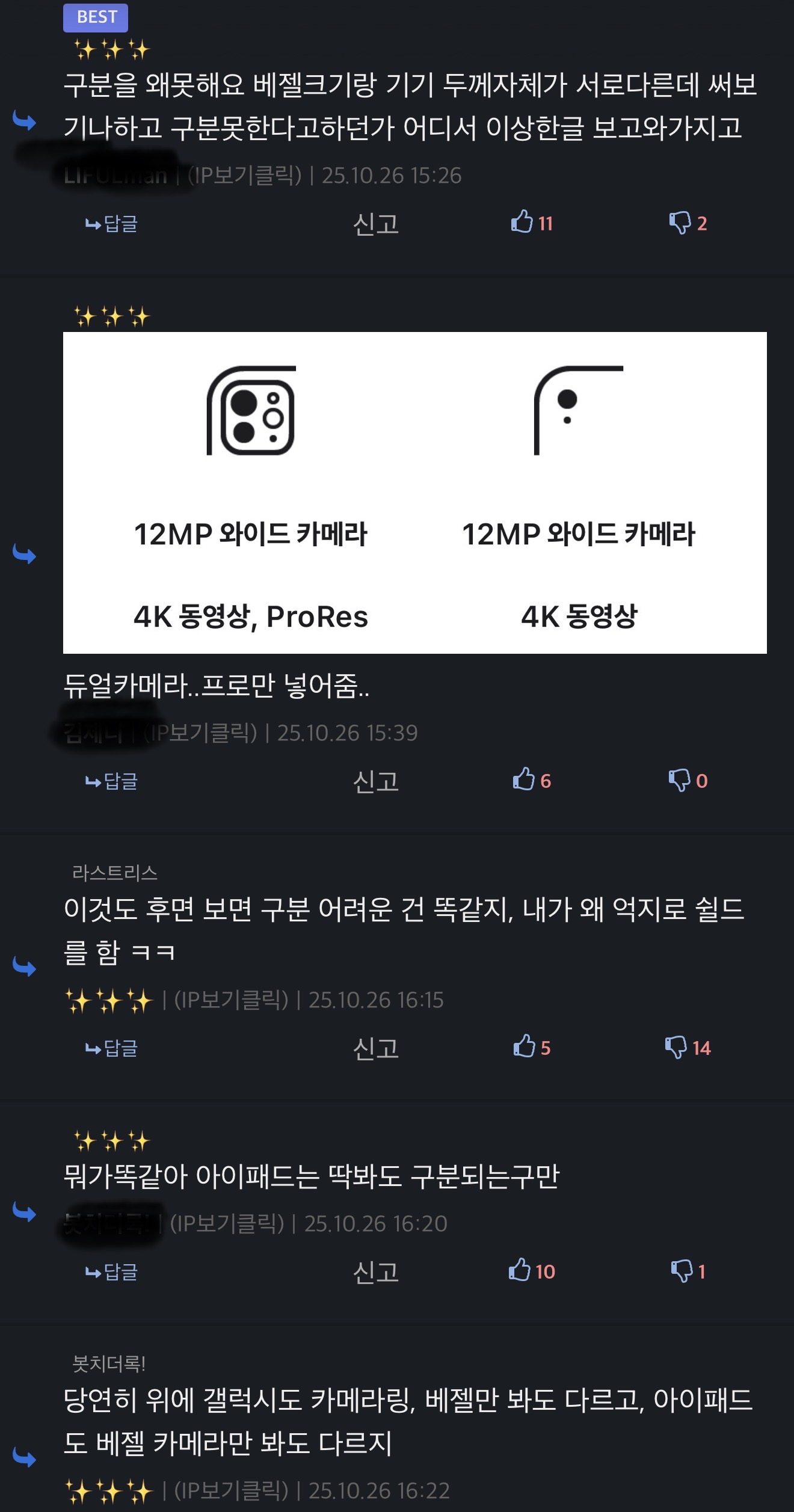 교묘하게 자르지말고 위에도 더 가져와라 내가 카메라 비교 대댓(저사람 댓글이 갤럭시 후면 비교)단건 갤럭시 비교 사진보고 한거임 | 25.12.04 20:14 | | |