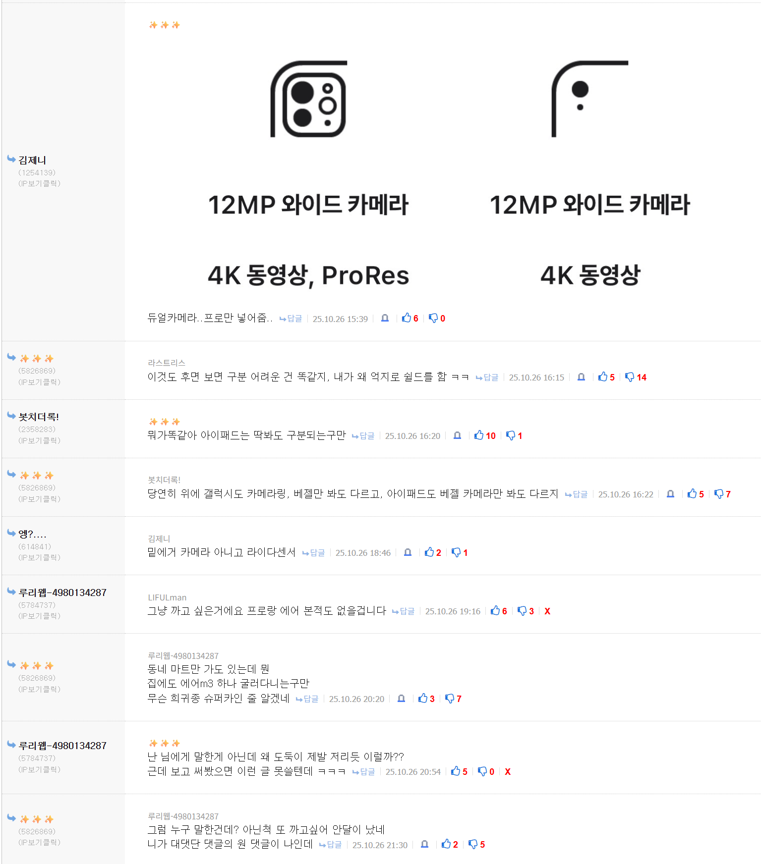 근데 더 잘났다면 당당하면 되는데, 왜 굳이 아랫것에 신경쓰면서 매번 언급해주는거임? 그리고 뭐 집, 자동차나 하다못해 5090 샀다는 것도 아니고 200만원 휴대폰에 왜케 의미부여하는걸까 집, 차는 못 사도 휴대폰은 살 수 있으니까 자존감 부여하는건가.. | 25.12.10 17:28 | | |