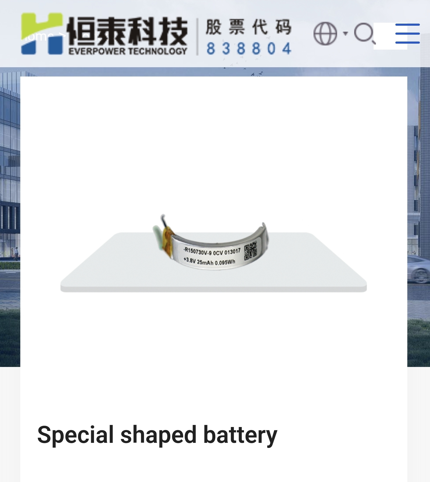 http://www.htkjbattery.com/en/products/customized-shaped-battery/68.html 중국 에버파워사 특수형태 초소형 리튬폴리머 배터리 탑재