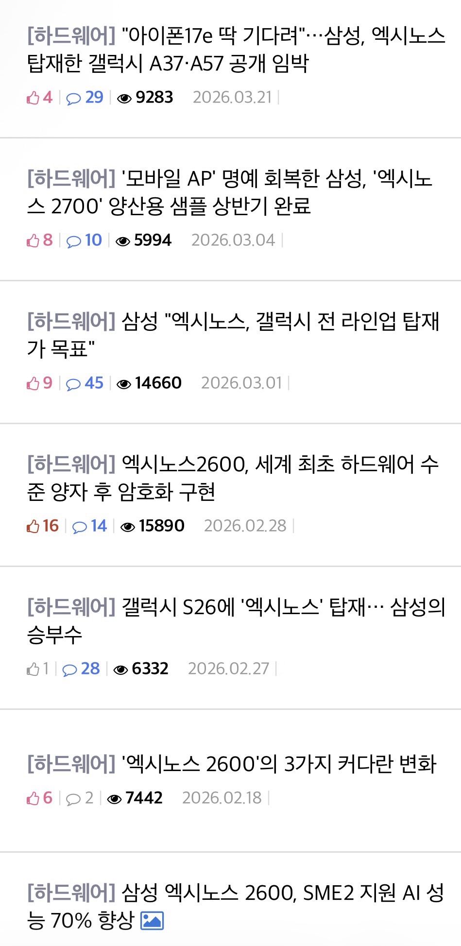 앞으로 울트라에 엑시 들어갈때까지 엑시노스는 아닌걸로... | 26.03.28 21:46 | | |