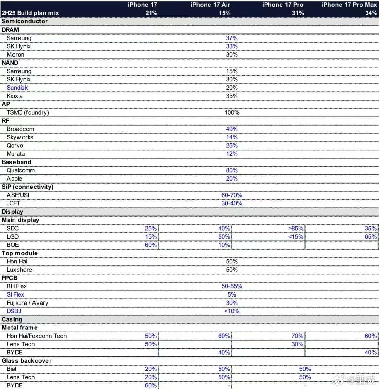 해당 BOM표 기준으로, Build plan Mix와 모델별 디스플레이 공급사 비중 계산해도 SDC가 약 49~50%/LGD 약 37%/BOE 14% 나오네요 | 25.10.17 18:53 | | |