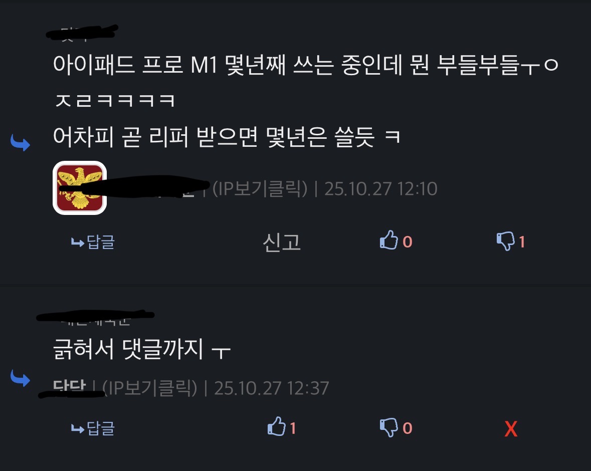 본인이 다른 글에 부들 대다가 여기와서 그대로 화풀이ㅋㅋㅋㅋㅋ | 25.10.27 18:56 | | |