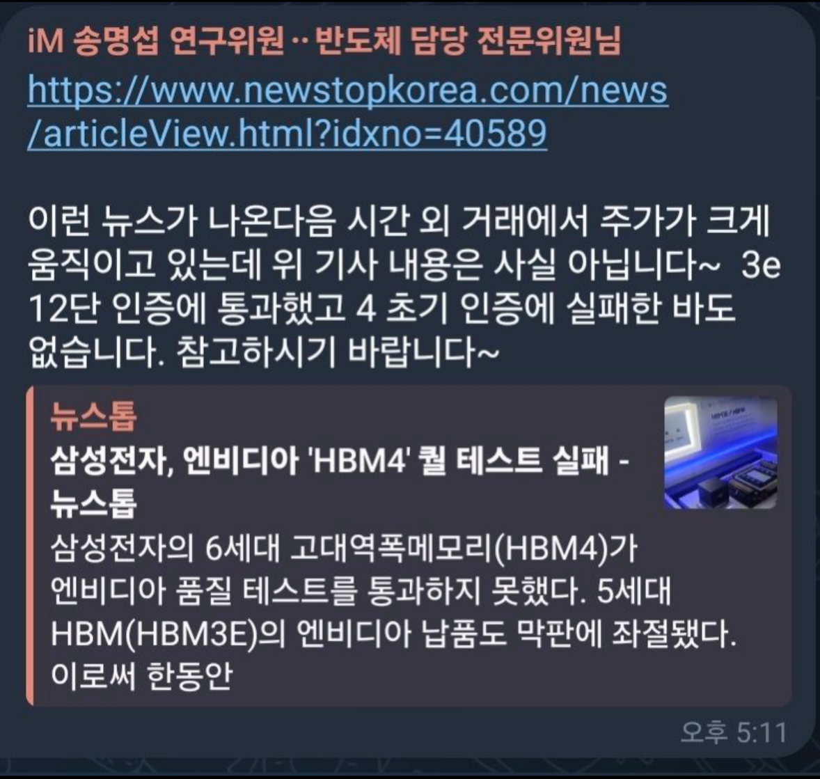 [기타] '삼성전자 HBM4 탈락설'에 NXT 거래에서 10만전자 깨져... [5]