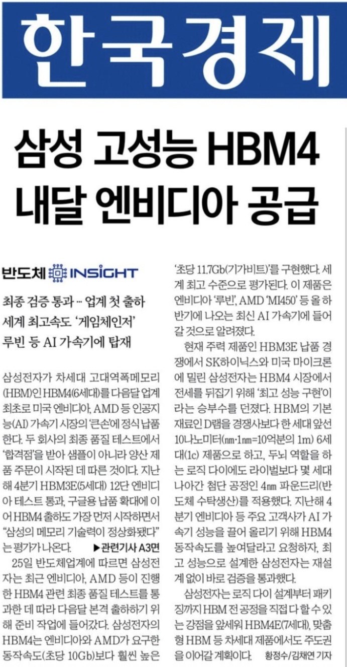 hbm3때부터 그런 내용으로 합격해서 공급한다 라고 기우제지낸 이력이 화려한게 한경이였습니다. 양치기 소년말은 함부로 믿을 수 없다는 말이에요 그냥 | 26.01.25 21:03 | | |