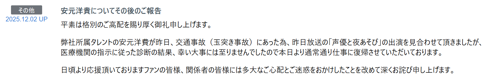 누군가 했더니 블리치 차드 성우님. 다치지 않아서 정말 다행이네요