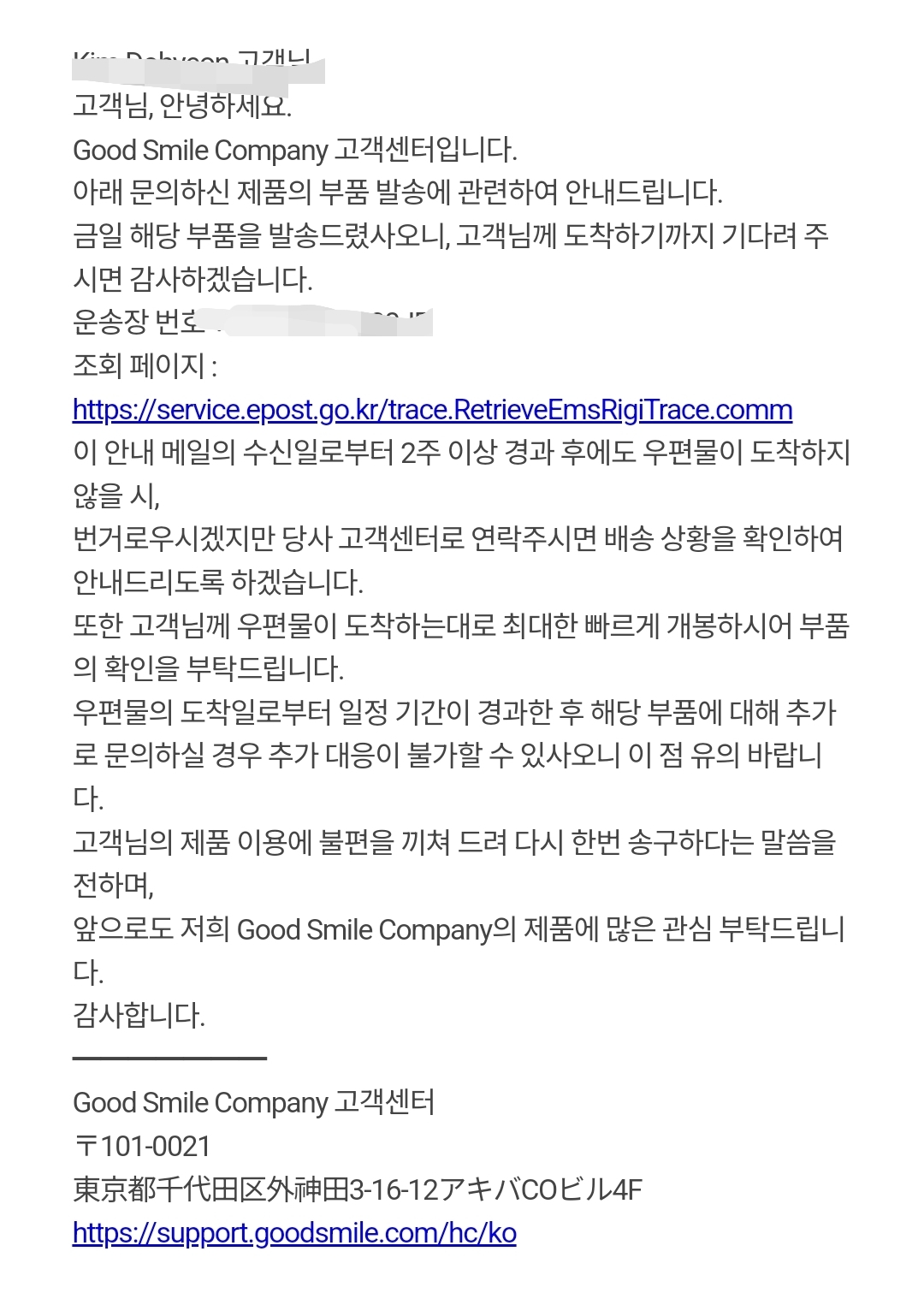 오늘 오전에 정황상 스이껄로 추정되는 굿스마공샵발 부품 배송 메일이 와있읍니다 드디어 | 26.03.06 12:28 | | |