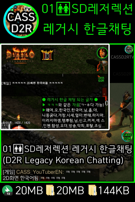 ✅파일(File) https://drive.google.com/file/d/1LNF0fk5u_GL7-a5vuUxdWGT1BmXOiM_T/view?usp=sharing ( CASSD2RTV 01🚻SD 디아2 레거시 한글 채팅 ) 만약에 구글 드라이브 파일이 없다고 나오면, 새로운 버전이 업데이트 된 것일 수 도 있으니 본 채널인 유튜브 영상의 설명글을 참고하고 거기서 업데이트된 스킨을 받으시면 됩니다. ✅유튜브 영상 https://youtu.be/S_o4cbSUJiY?si=Gi8pdsPBS9EYr788 글 내용 안보시고 댓글만 보시는 분들을 위해 추가적으로 써봤습니다. 읽어주셔서 감사합니다.
