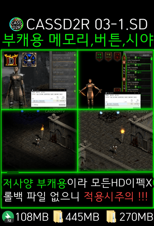 03-2👁SD 디아2 부캐용 저사양 메모리,버튼,레거시 시야 최적 모드 ✅파일(File) https://drive.google.com/file/d/1exDQf9Haukqc5oe3lxMPfL5xSuAF4E3f/view?usp=sharing 만약에 구글 드라이브 파일이 없다고 나오면, 새로운 버전이 업데이트 된 것일 수 도 있으니 본 채널인 유튜브 영상의 설명글을 참고하고 거기서 업데이트 된 스킨을 받으시면 됩니다. (유튜브) https://youtu.be/rqNm0n_q8eQ?si=9ELctjuGZ4Qga56s 읽어주셔서 감사합니다.