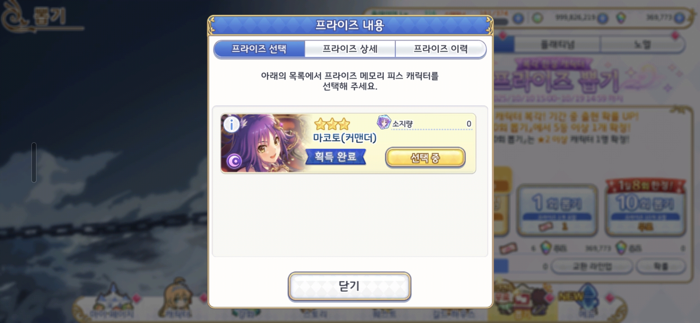 프라이즈 뽑기 기간 동안 획득한 캐릭터 교환 Pt를 「마코토(커맨더)」로 교환할 수 있습니다.