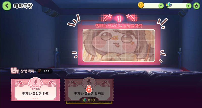 테마극장 일일 퀘스트 및 업적으로 획득하신 포인트와 추가 상품 구입으로 다양한 보상을 수령해 보세요!