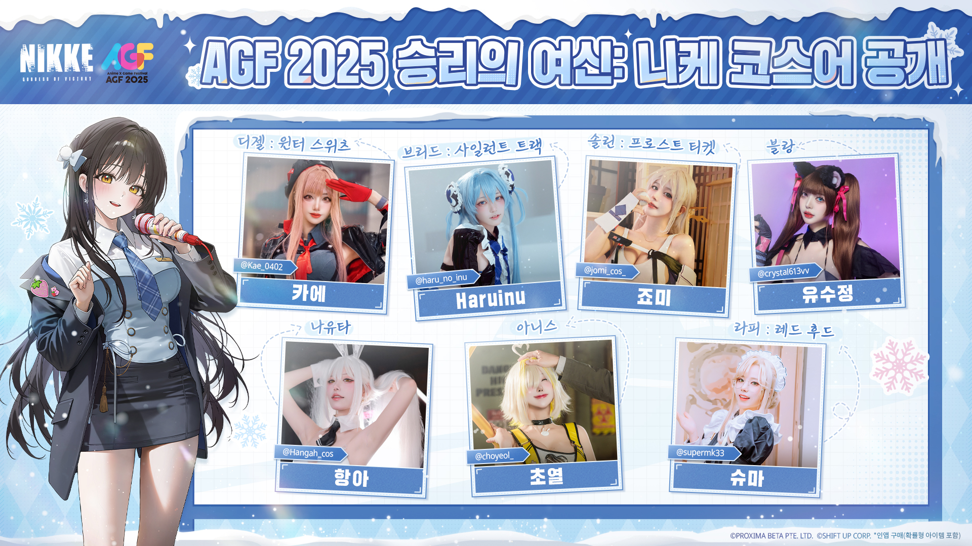 - AGF 2025 <승리의 여신: 니케> 부스에서는 총 7명의 코스어를 직접 만나보실 수 있습니다.