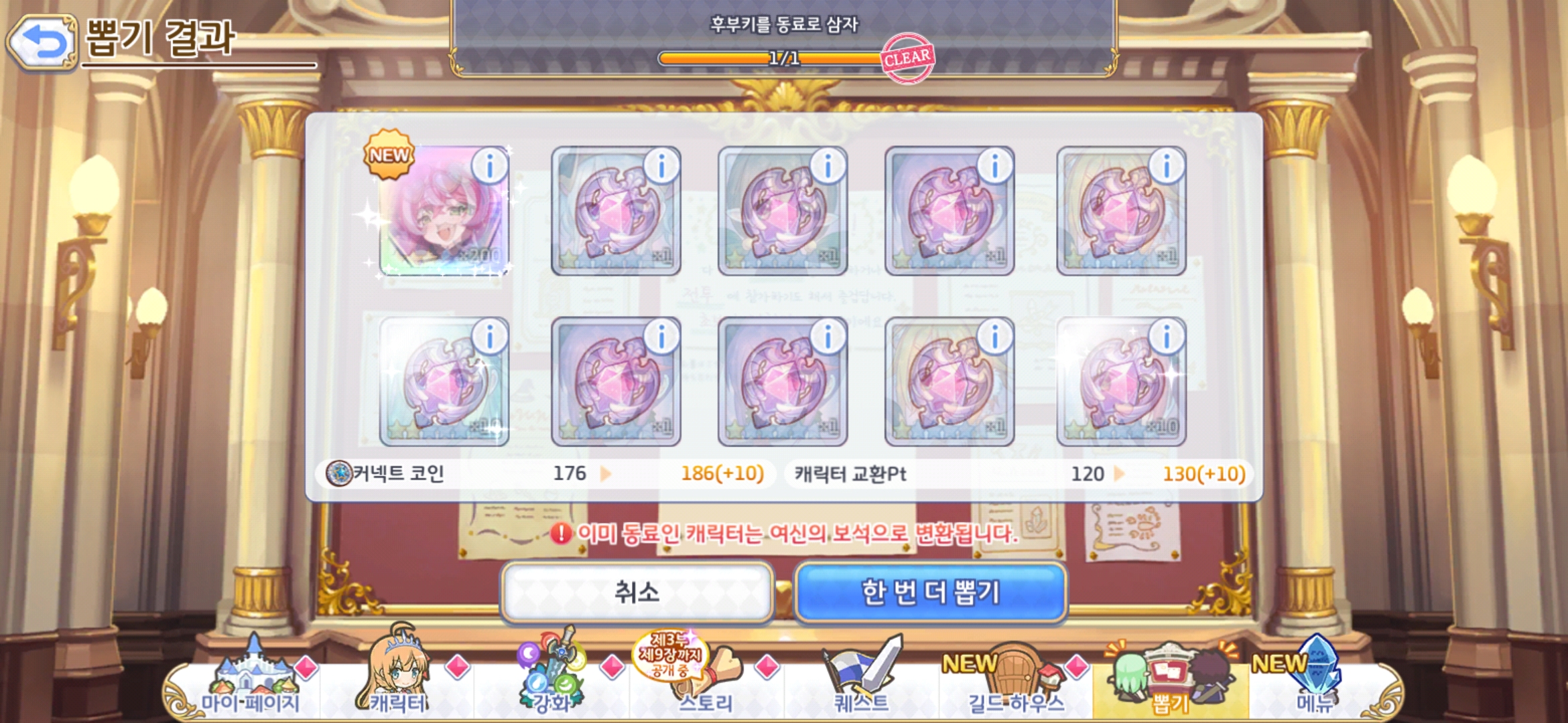 - 플래티넘 뽑기 티켓으로 뽑기 한 경우에도 캐릭터 교환Pt를 획득합니다.