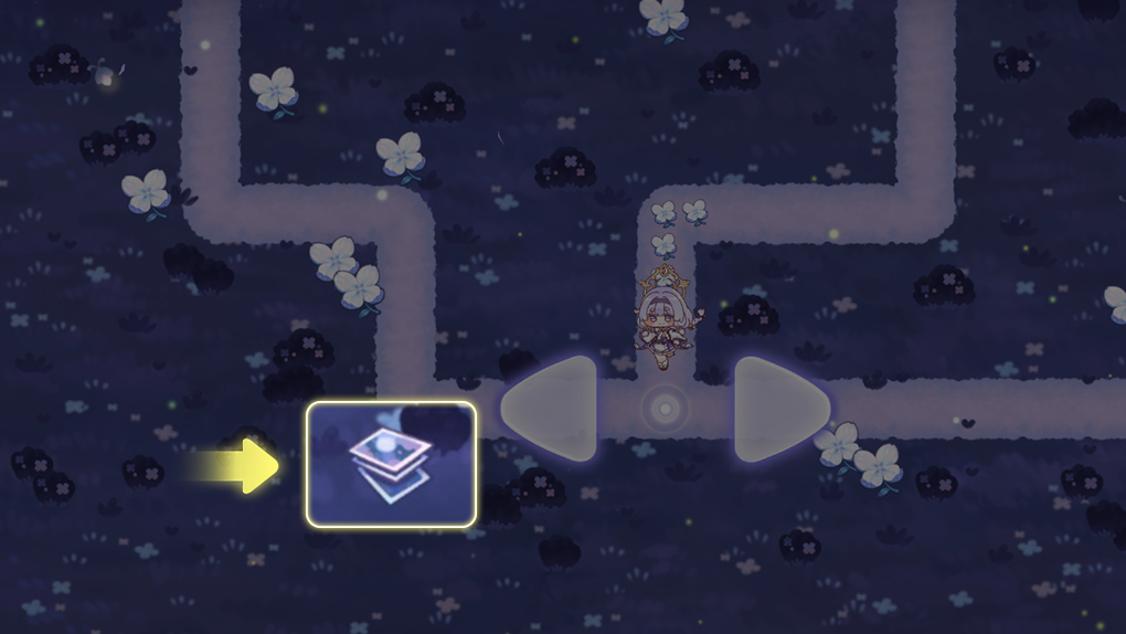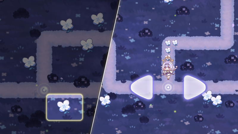 갈림길에서 이동할 방향을 선택할 수 있고, 모은 꽃송이는 밟아버리면 안되니 조심해야해요!
