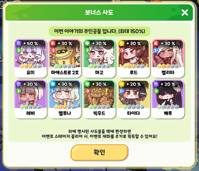 이벤트 재화를 추가로 획득할 수 있습니다.(최대 150%)