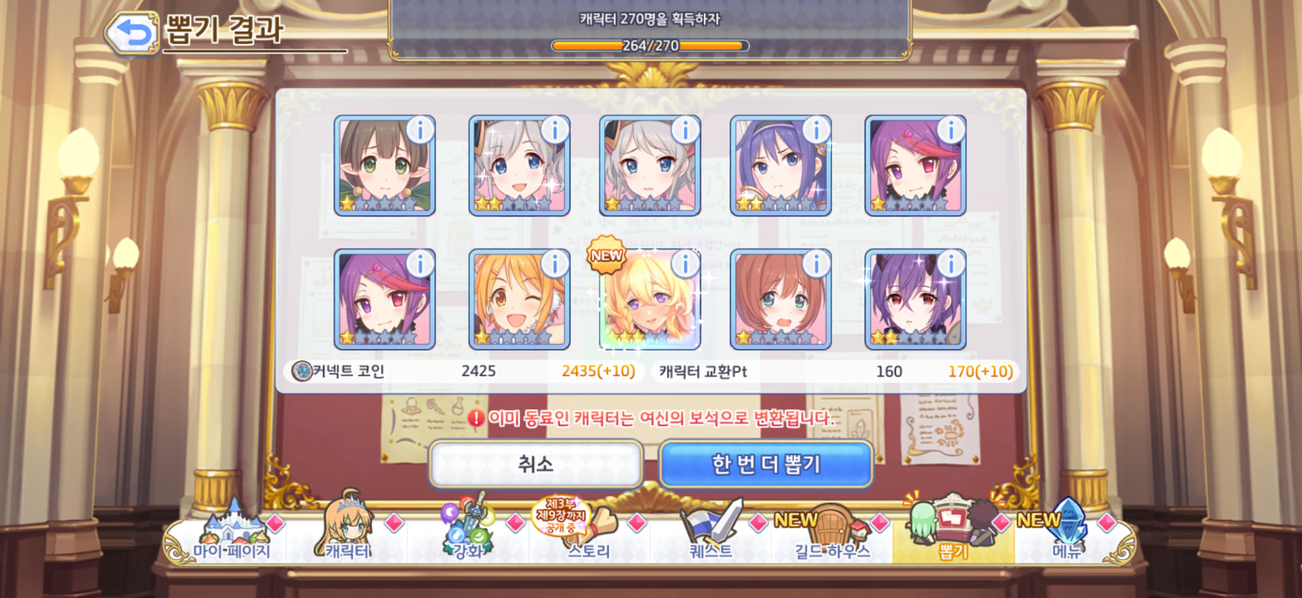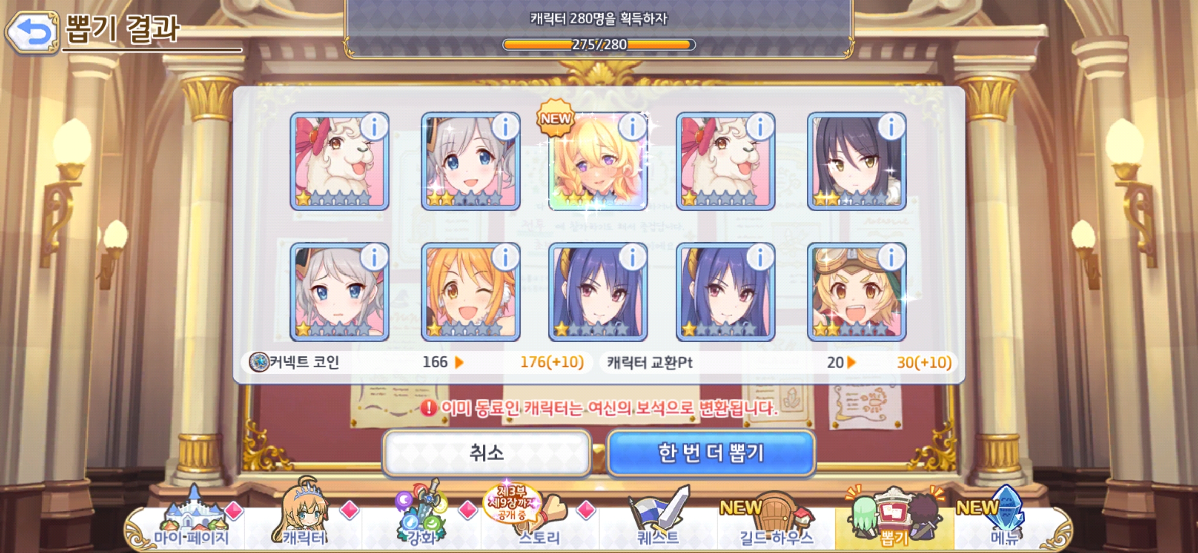 - 플래티넘 뽑기 티켓으로 뽑기 한 경우에도 캐릭터 교환Pt를 획득합니다.