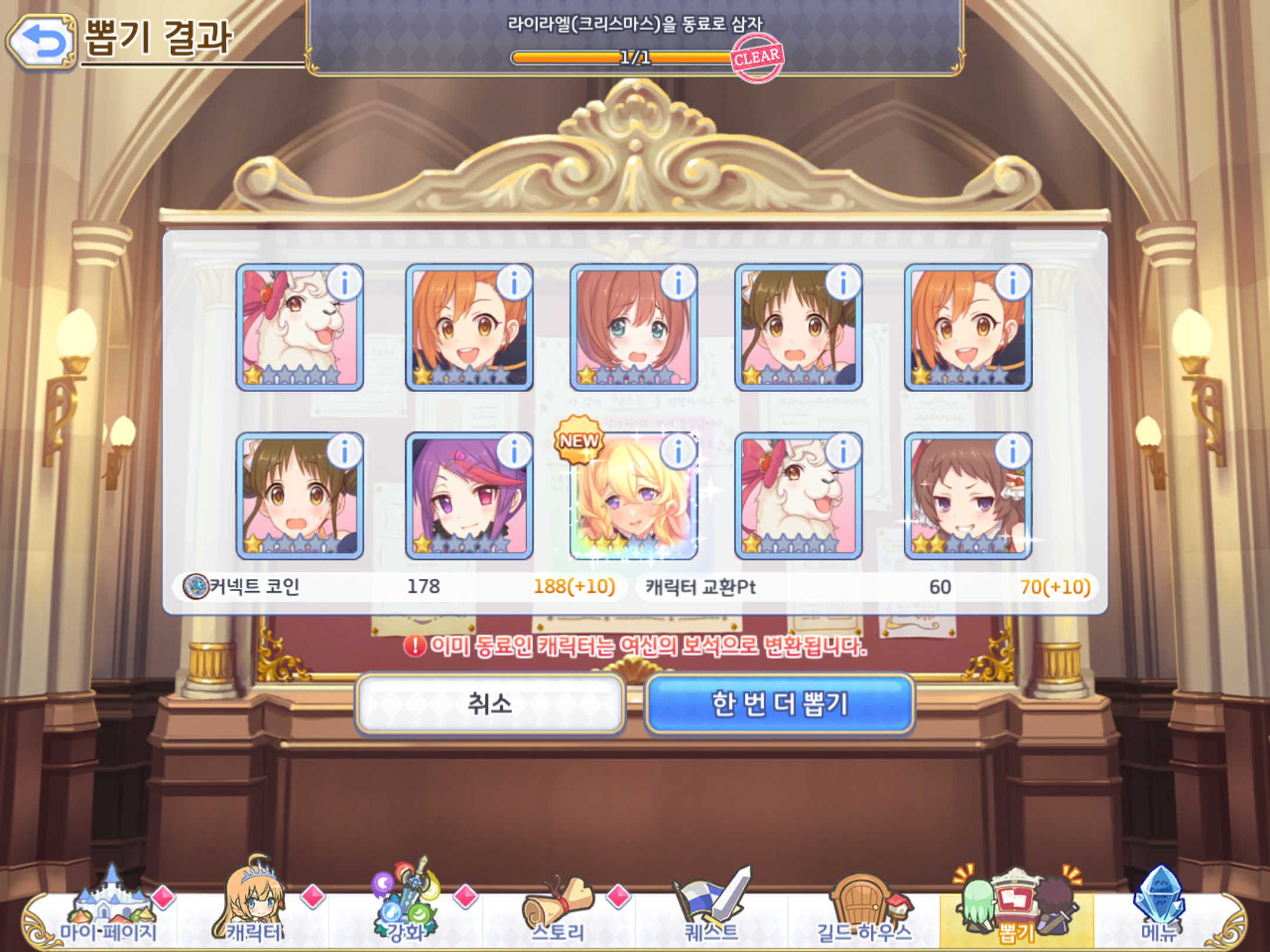 픽업 뽑기 기간 동안 획득한 캐릭터 교환 Pt를 「라이라엘(크리스마스)」 로 교환할 수 있습니다.